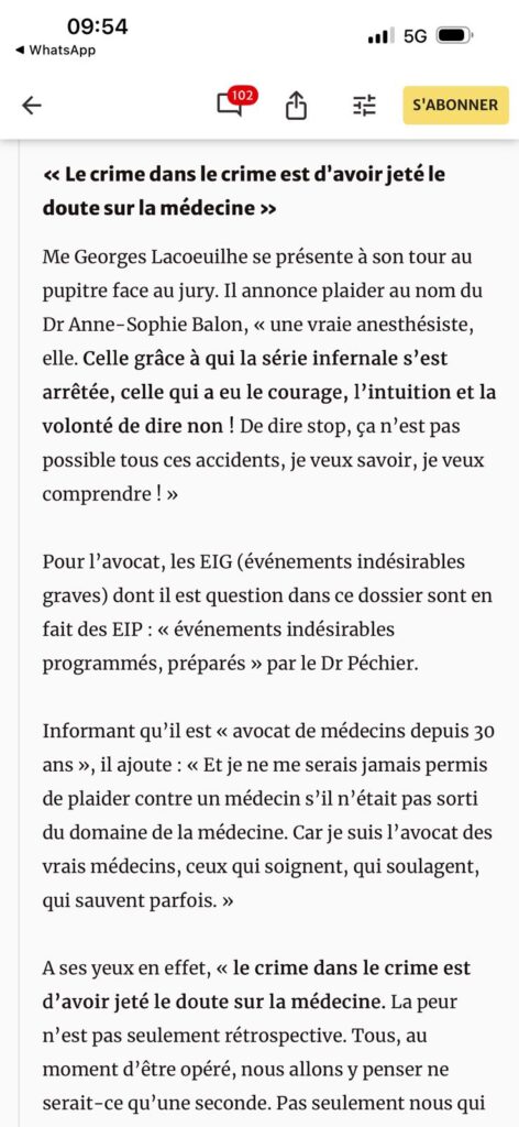 Me Georges Lacoeuilhe, avocat du Dr Anne-Sophie Balon dans le procès Péchier